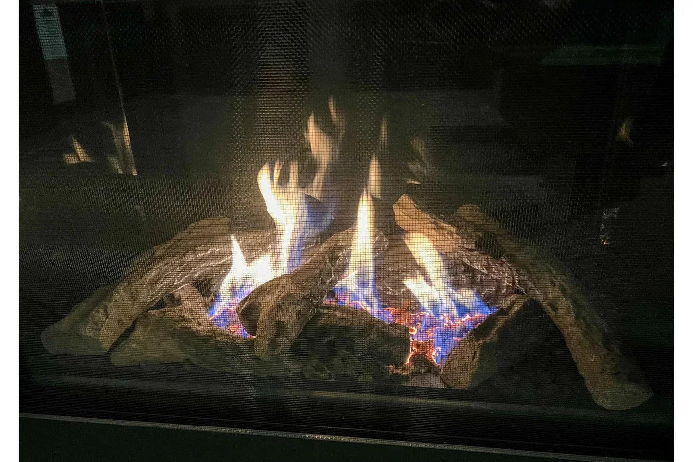 The fireplace can be fueled by either natural gas or liquid propane, offering flexibility for your home setup.