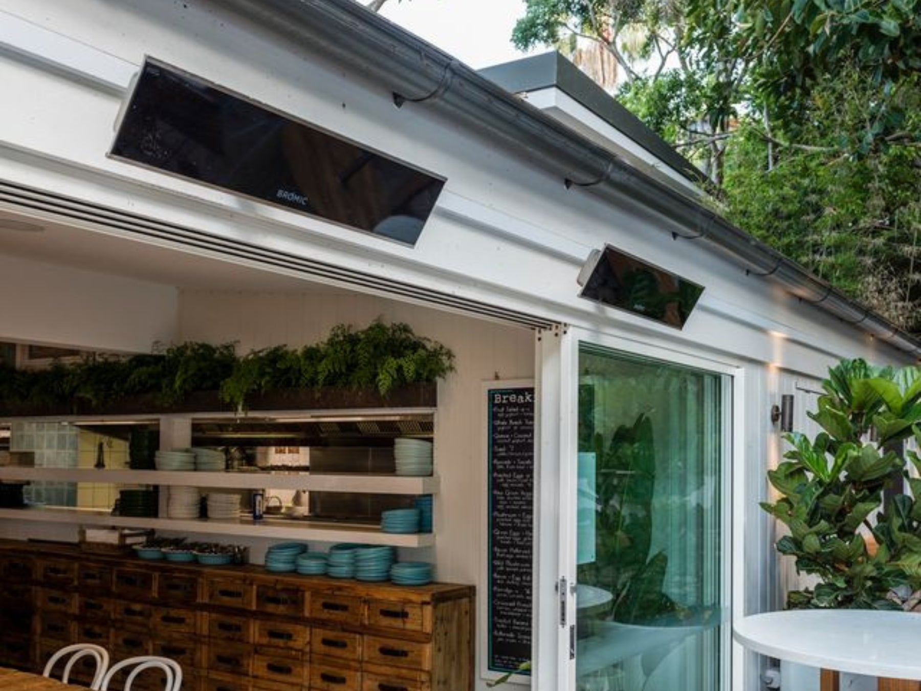 Crafted with a slim stainless-steel body and black ceramic-glass fascia, it delivers warmth with elegance and style while minimizing light output. Built for performance, it operates silently, maintains effectiveness in winds up to 8 mph, and integrates seamlessly with Bromic Smart-Heat wireless controls for customized operation.