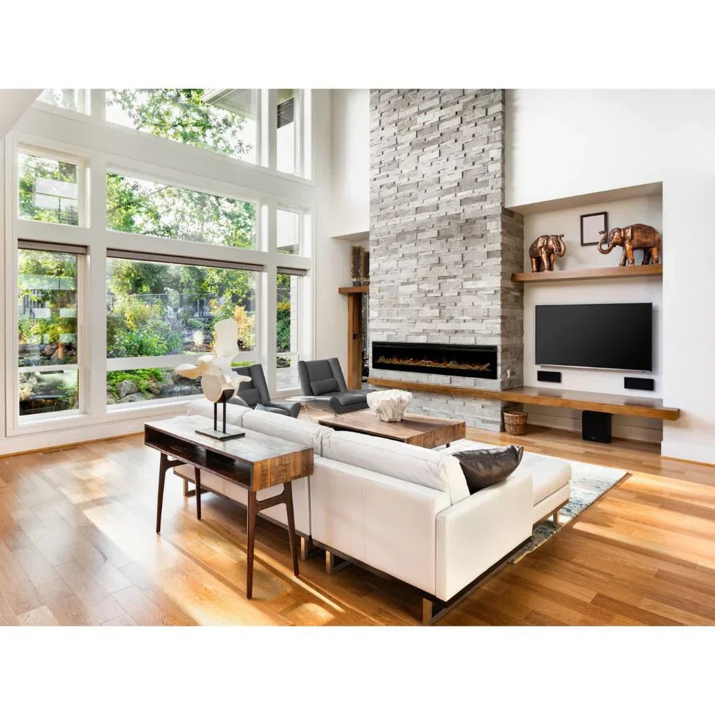The Driftwood and River Rock adds warmth and charm to Dimplex Linear Fireplaces. This organic look compliments rooms that feature wood tones and more traditional décor. A designer’s touch is evident in the unique Driftwood pieces and the River Rocks allow just the right amount of light to sparkle through for the perfect finishing touch.