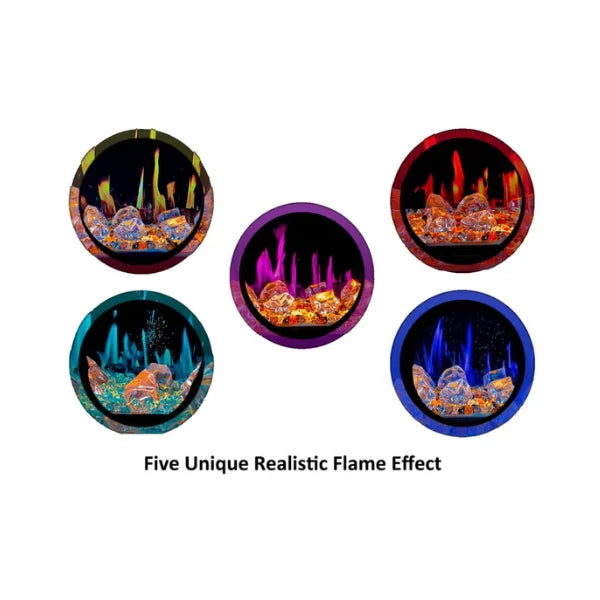 5 Unique Flame Colors: Select from five lifelike hues to set a cozy ambiance, with adjustable crackling sounds and sparkles for added realism.