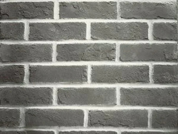 Eye-catching brickwork in a herringbone pattern adds a touch of classic masonry style in a cool gray tone. -
