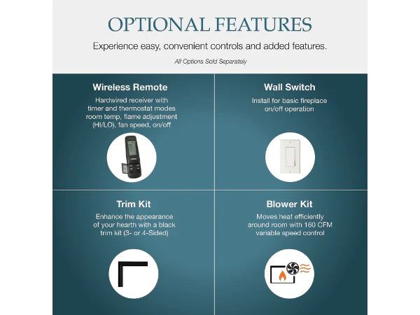 - Optional fan kit and remotes available
