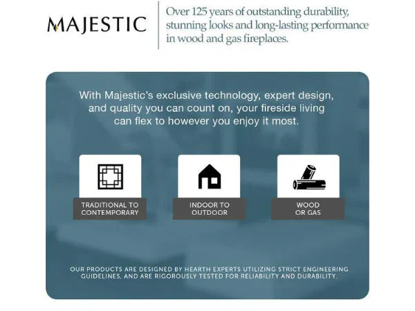 Bring warmth and timeless design to your home with the Majestic Meridian 36" Direct Vent Propane Gas Fireplace. Designed to blend traditional aesthetics with modern functionality, this fireplace features a clean-face design, allowing an expansive view of the flames framed by a traditional brick interior and realistic ceramic log set.