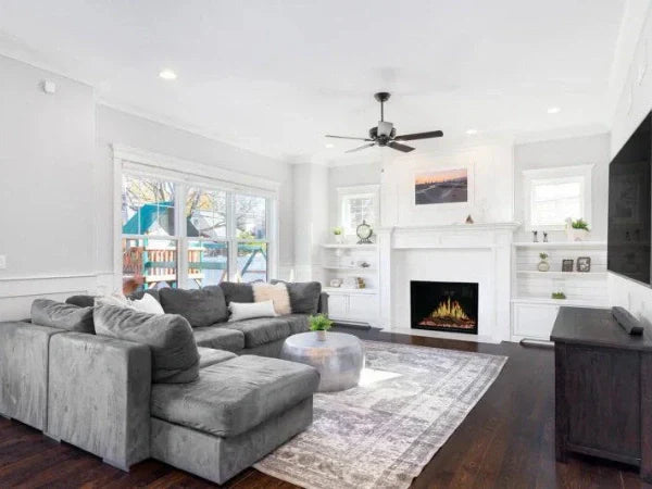 Elevate your space with the Orion® Traditional 30” Electric Fireplace, designed to mimic the charm of a traditional wood-burning unit without the maintenance. The Heliovision® Flame Technology produces ultra-realistic fire visuals, enhanced by the fireplace’s taller flame height and deep flame bed.
