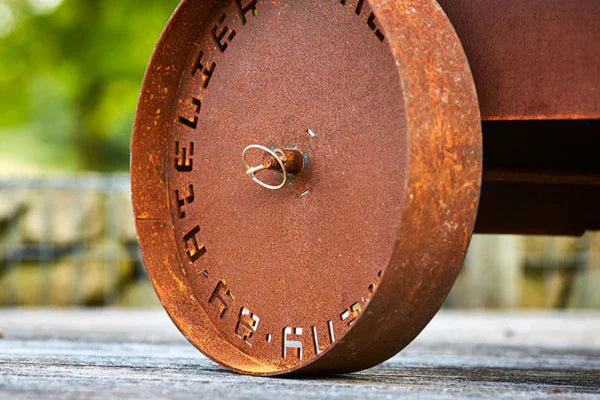 RB73 Bijuga Outdoor Wood Fireplace With 2 Wheels & Push Bar