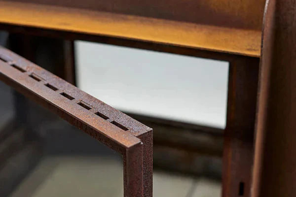 Weather-Resistant Construction: Constructed from 3mm CorTen steel, the fireplace is designed to withstand various weather conditions, developing a natural patina over time that enhances its industrial aesthetic while providing a protective layer against corrosion.