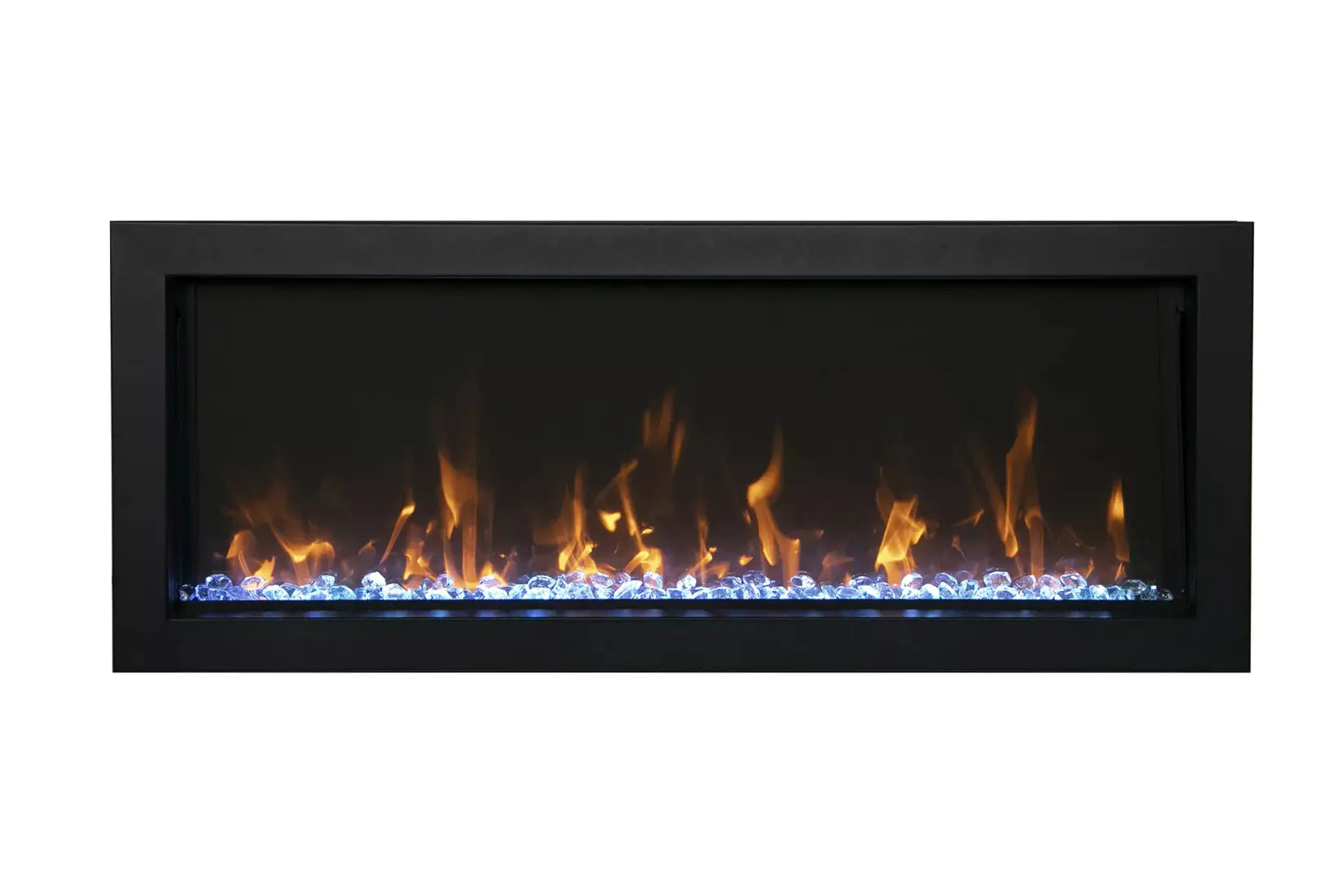 This unit is hardwire ready and thermostat hard-wire ready, making it flexible for more advanced installations. The Remii 102765-XS also includes Canyon Brown and Ocean Blue fire glass media and comes with an optional black steel surround, allowing you to customize the look to fit your space.